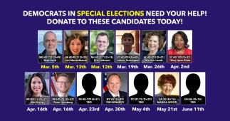 I've added three more races to the Special Elections fundraising page; all three are in deep red territory, but again, special elections often have very unusual turnout patterns so you never know: