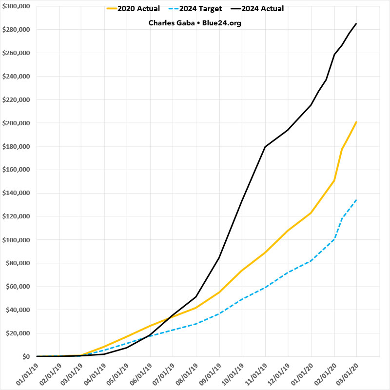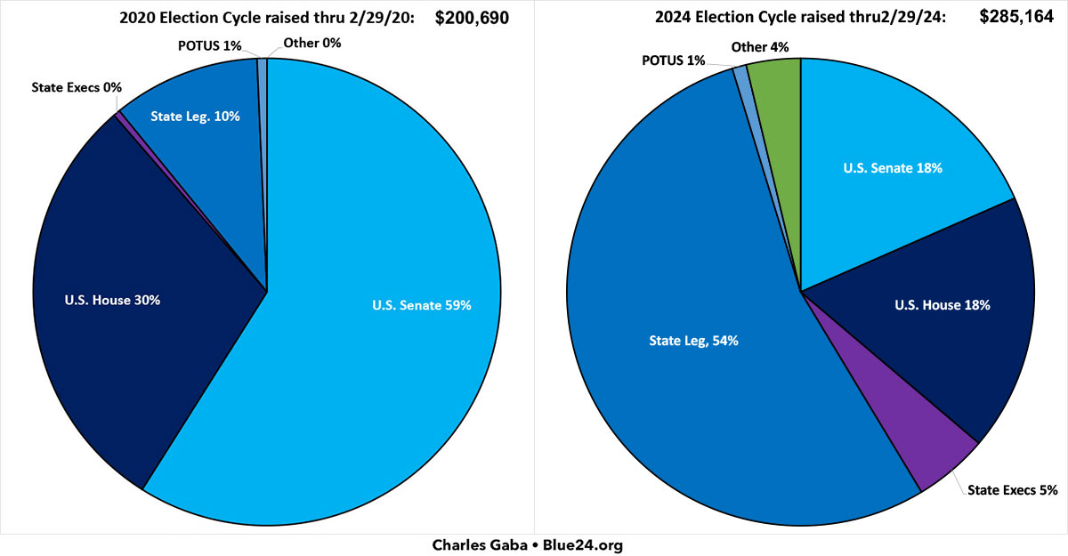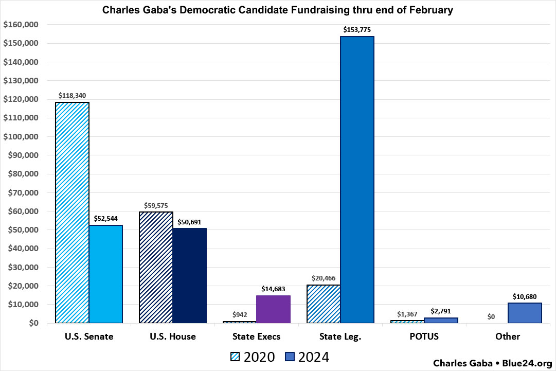 Four years ago, at the end of February 2020, I had raised a total of just over $200,000 for Democrats up & down the ballot, broken out as follows;