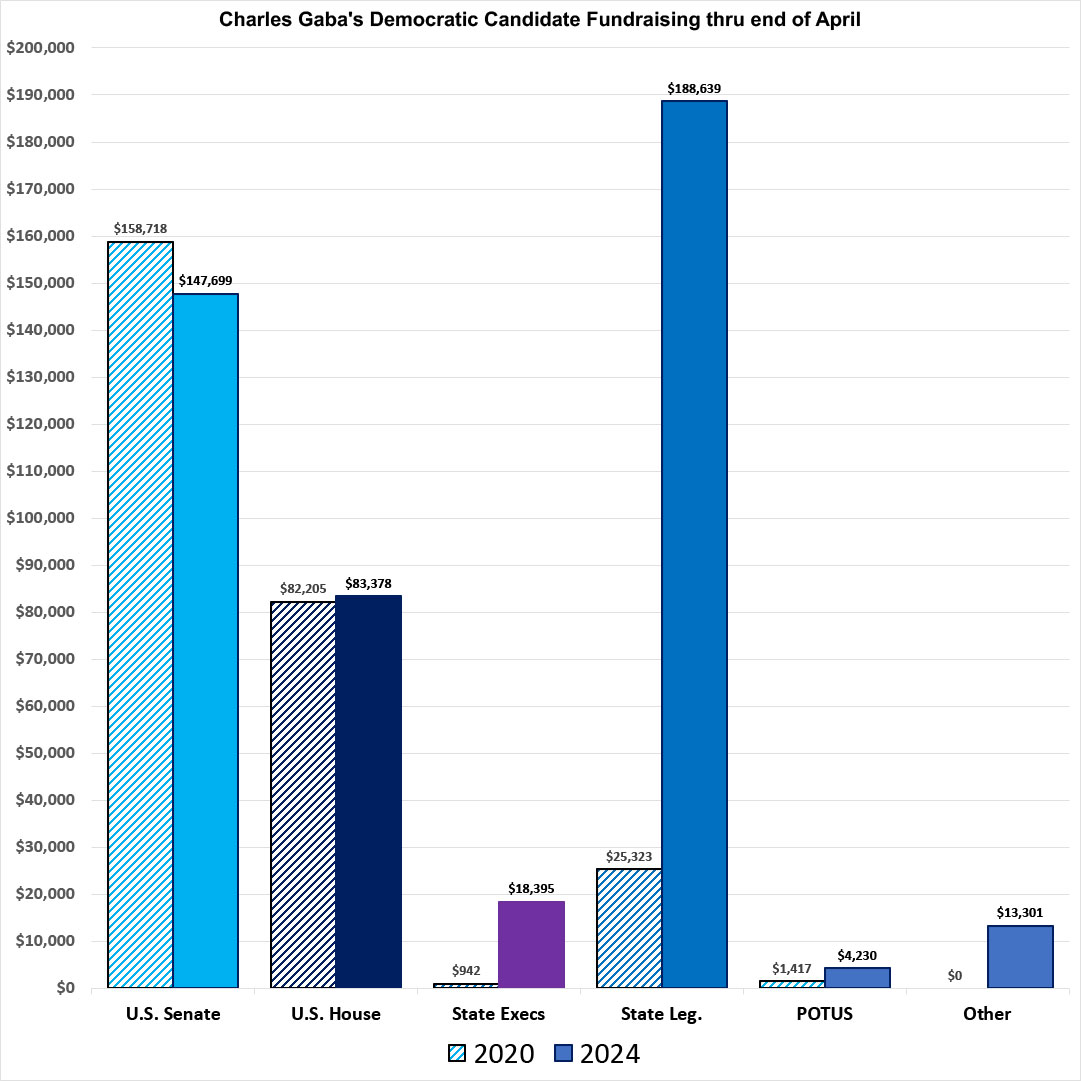 Four years ago, at the end of March 2020, I had raised a total of just over $227,000 for Democrats up & down the ballot, broken out as follows;