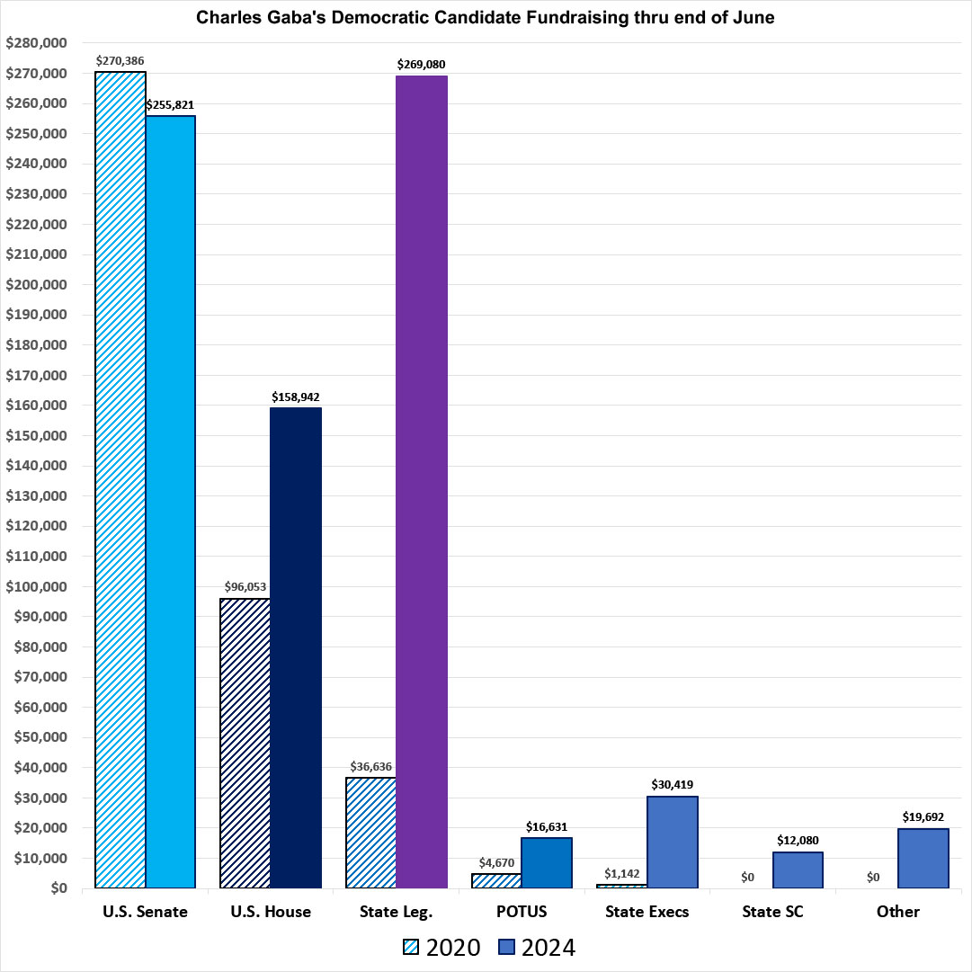 Four years ago, at the end of June 2020, I had raised a total of $409,000 for Democrats up & down the ballot, broken out as follows;