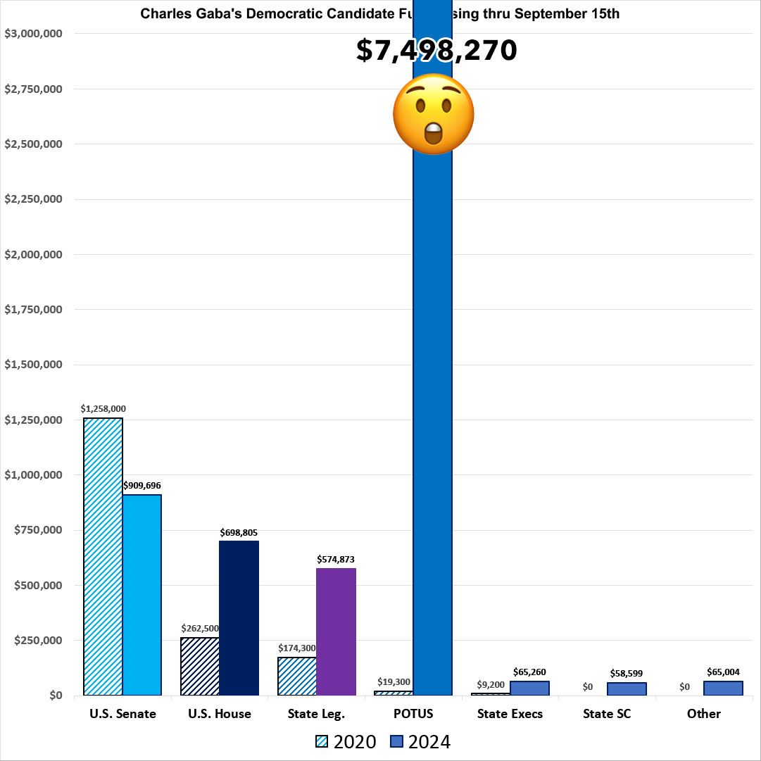 Four years ago, as of Sept. 15, 2020, I had raised a total of $1.72 million for Democrats up & down the ballot, broken out as follows;