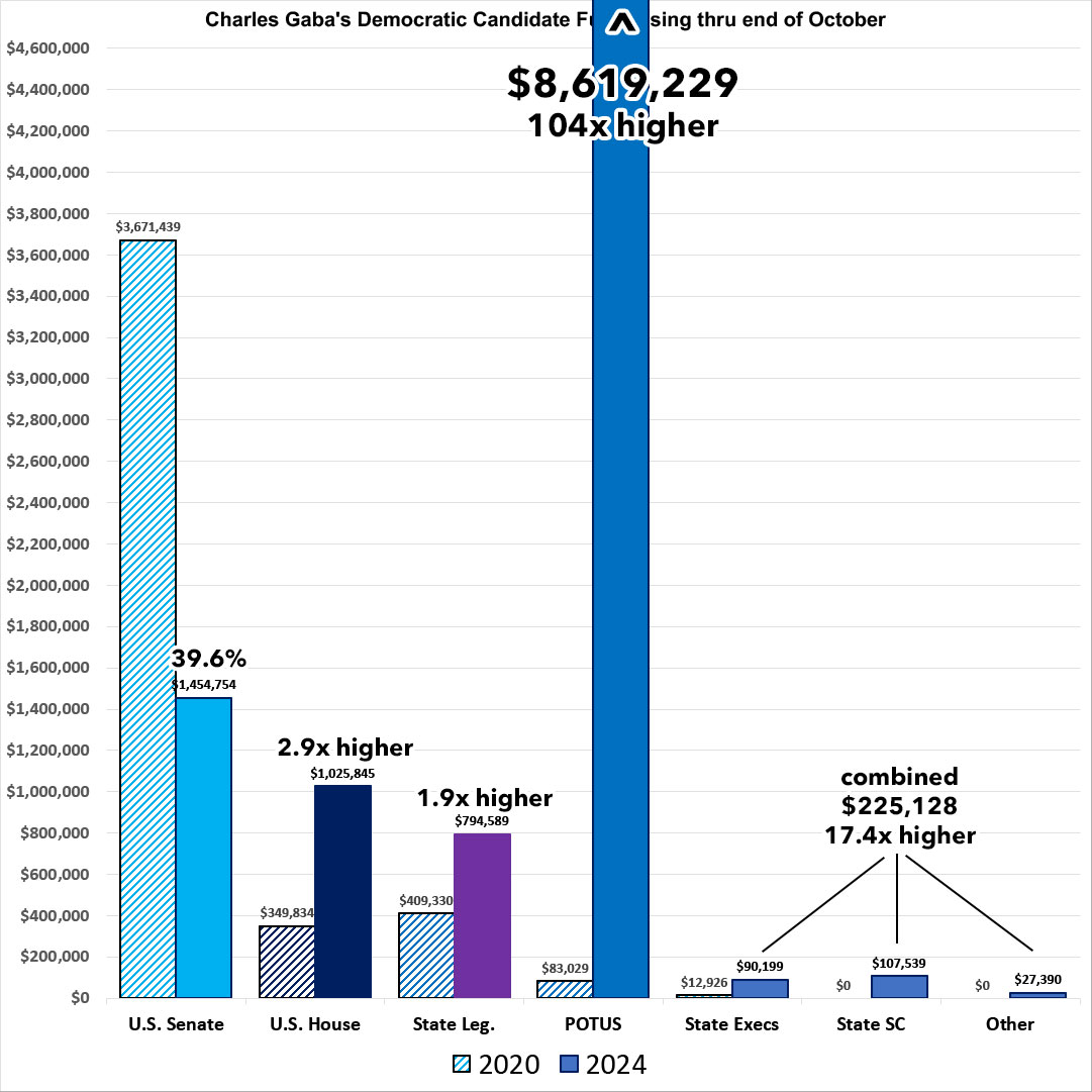 Four years ago, as of October 15, 2020, I had raised a total of $4.52 million for Democrats up & down the ballot, broken out as follows;