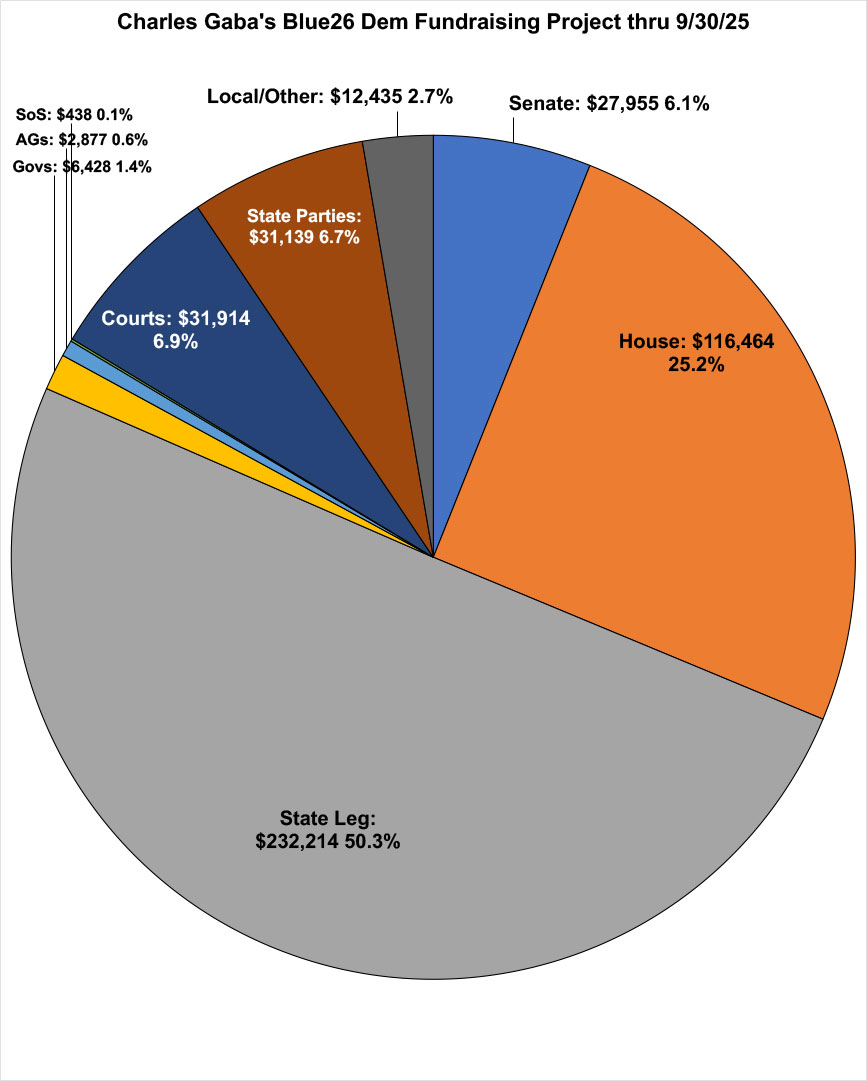 Besides the normal ramping up as we approach Election Day 2025 that you'd normally expect, by far the biggest boost in September came from launching the strategic "Virginia Value Pack" page of Democrats running in deep red districts in late August. This page alone has generated nearly $120,000 for state legislative Dems, $114,000 of which was raised in September...nearly 60% of the total for the month.